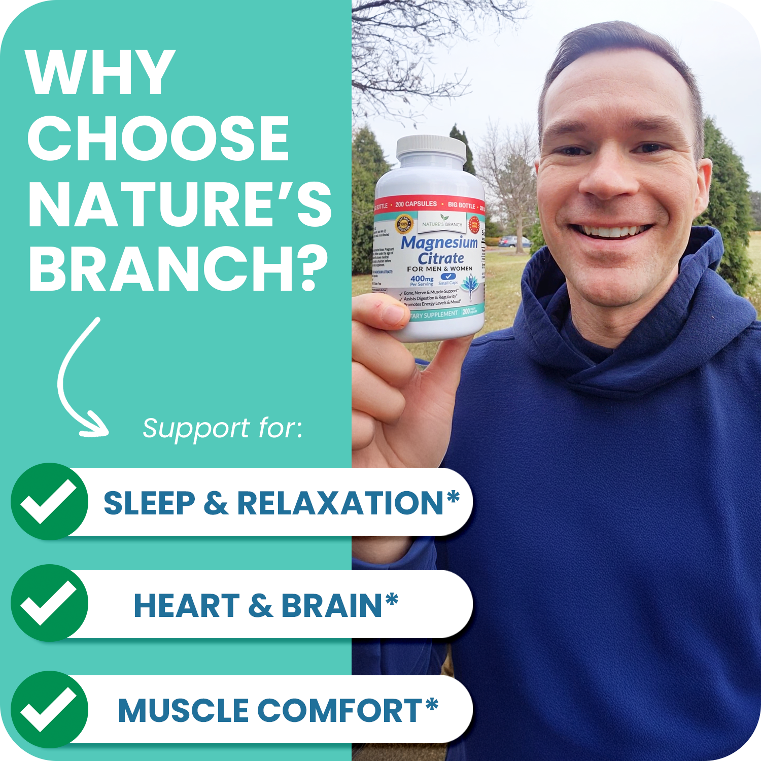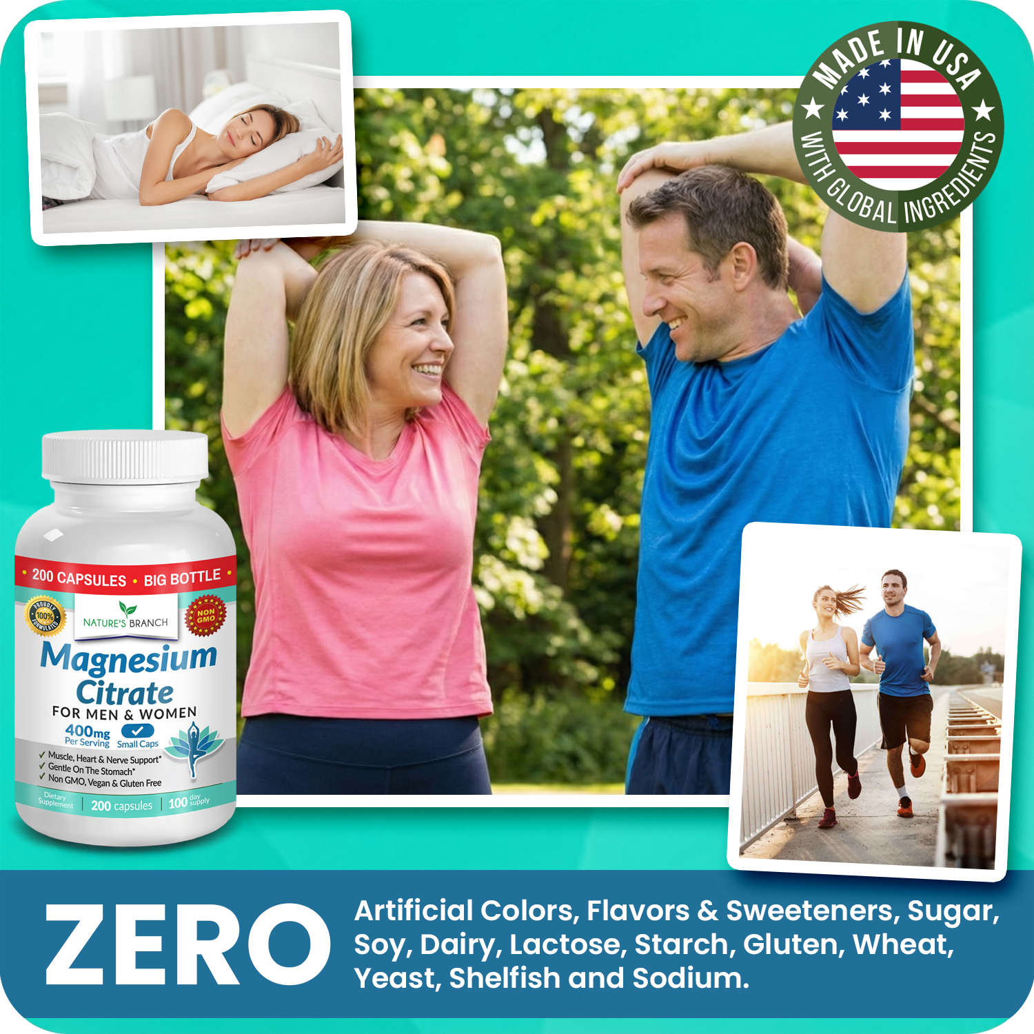 Our Magnesium Citrate supplements (400mg per serving) are specifically formulated to support for sleep, heart health, brain and muscle comfort.*